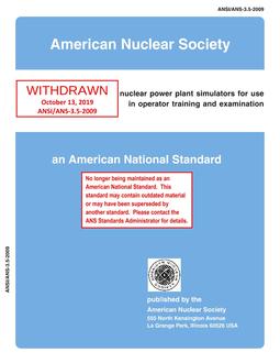 ANS 3.5-2018 establishes the functional requirements for full-scope nuclear power plant control room simulators that are subject to U.S. Nuclear Regulatory Commission regulation for use in operator training and examination. This standard also establishes criteria for the scope of simulation, performance, and functional capabilities of nuclear power plant control room simulators.