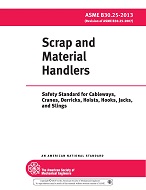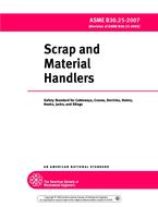 B30.25 includes provisions that apply to the construction, installation, operation, inspection, and maintenance of scrap and material handlers consisting of a base, a revolving upper structure with operator’s station(s), and a front for lifting scrap or materials using attachments such as magnets and grapples, and any variations thereof in which the equipment retains the same fundamental characteristics.